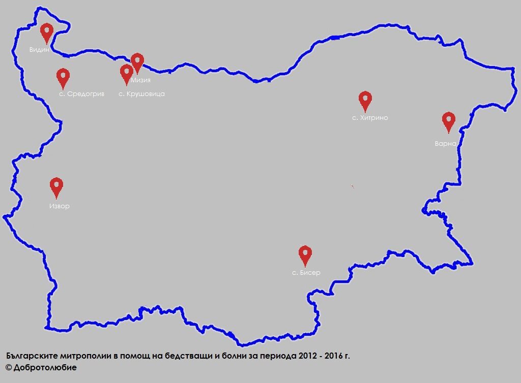 През 2012 г., когато бе наводнено с. Бисер и много хора загинаха или пострадаха в страната, се организираха редица благотворителни инициативи за подпомагане на бедстващите. Например, с благословението на Видинския митрополит Дометиан, епархията организира не само панихиди, но и материално подпомогна бедстващите хора. Три от православните храмове в Габрово се включиха в хуманитарната акция и събраха вещи от първа необходимост за пострадалите.