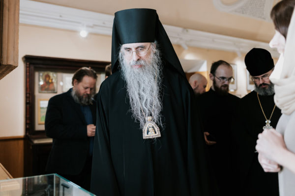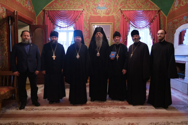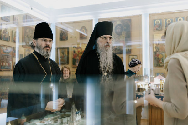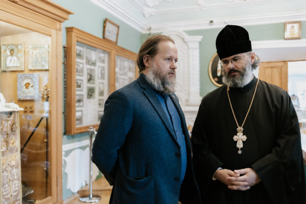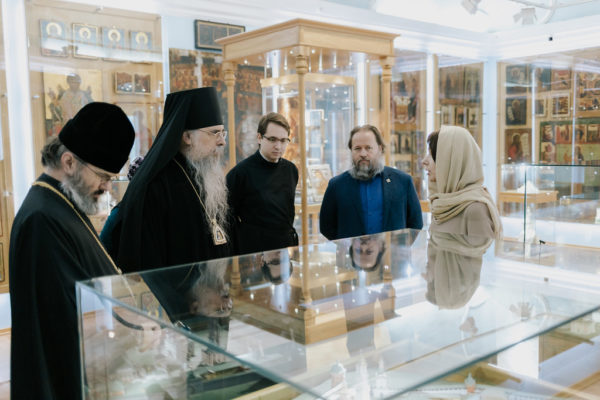 После экскурсионно-паломнической программы состоялась встреча ректора Московской духовной академии епископа Звенигородского Феодорита с епископом Аляскинским и Ситкинским Алексием.