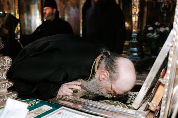 У врат обители почетных гостей встретили заведующий Паломническим центром Лавры иеродиакон Поликарп (Тибанов) и насельник монастыря игумен Филипп (Ельшин). Во встрече также участвовал студент Московской духовной академии диакон Николай Крейгл, клирик Православной Церкви в Америке.