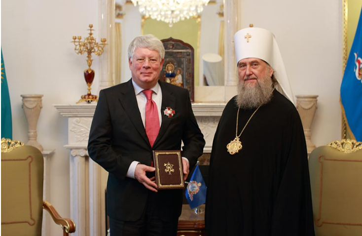 Митрополит Астанайский и Казахстанский Александр вручил послу России в Казахстане А.Н. Бородавкину орден благоверного князя Александра Невского