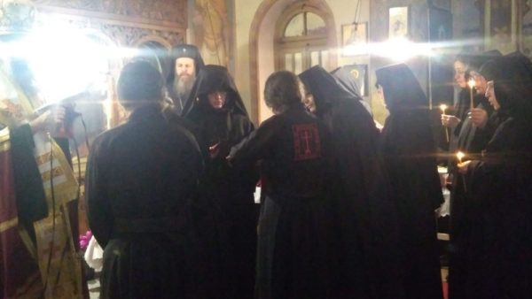 Послушничките бяха водени под мантия от игумения Касиана, която от години има наблюдения и подпомага в духовния живот новопостриганите сестри.