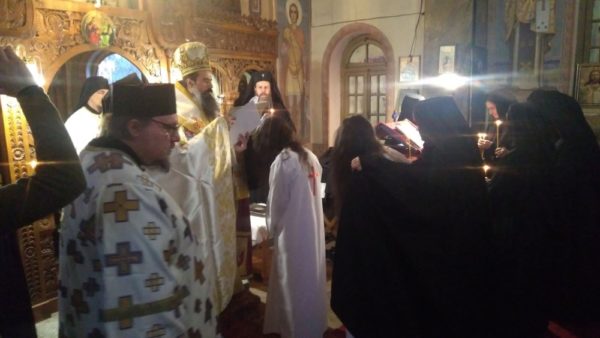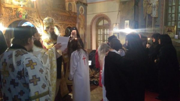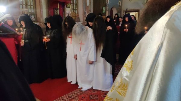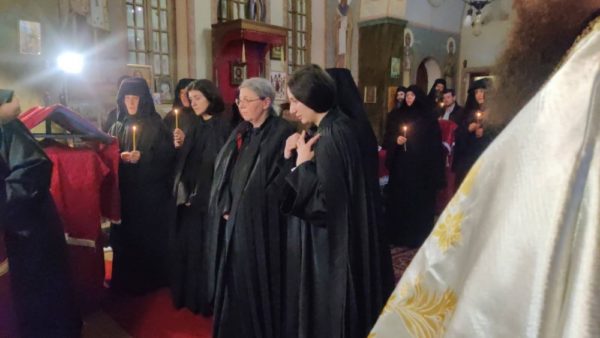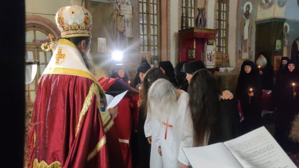 Послушничките бяха водени под мантия от игумения Касиана, която от години има наблюдения и подпомага в духовния живот новопостриганите сестри.