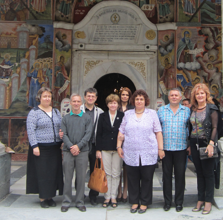 През 2013 г. в Рилския манастир: отляво надясно: Ваня Станчева, Панчо Василев, Коста Костов, проф. Емилия Василева, Росица Георгиева, Илиян Чолев, Р. Новакова:
