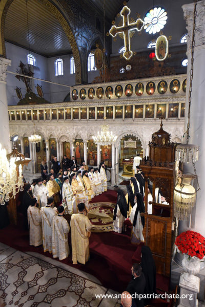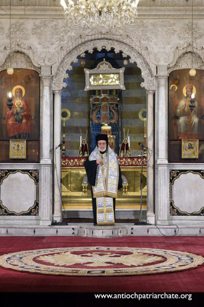 وصباح السبت ترأّس غبطته القدّاس الإلهيّ وعاونه المطارنة الياس (صور وصيدا)، سابا (حوران)، جاورجيوس (حمص)، باسيليوس (عكار)، سلوان (جبل لبنان)، نيقولاوس (حماه)، اثناسيوس (اللاذقية)، أفرام (حلب) والأساقفة موسى الخوري، ديمتري شربك، قسطنطين كيال، يوحنا بطش، أرسانيوس دحدل، و موسى الخصي ولفيف من الآباء الكهنة والشمامسة.