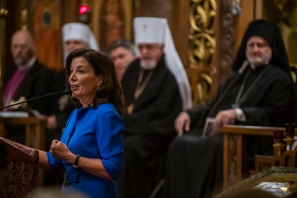Службата, която се проведе в украинската Катедрала на Свети Володимир в Манхатън, бе отражение на икуменическата и междурелигиозната подкрепа за Украйна и украинската диаспора в Съединените щати.