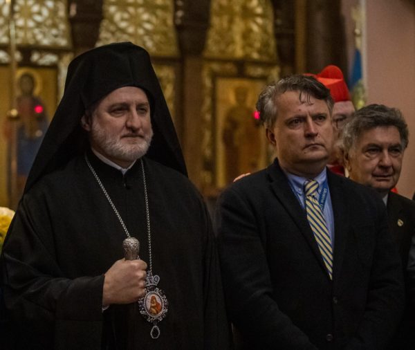 Днес се чувстваме благословени да бъдем заобиколени от толкова много любов и подкрепа от приятелите на Украйна. Бих искал да изразя най-дълбоката си благодарност към всички вас днес, че отговорихте на нашия призив да се молим за мир в Украйна с такава готовност. В отговор на трагичната хуманитарна криза в Украйна и незабавната помощ, необходима там, ние, от Архиепископията на Америка (Вселенска Патриаршия), обявихме голямо усилие за набиране на средства, което ще помогне на най-засегнатите от руската инвазия. Ето защо, като първа стъпка, дарихме 100 000 долара на Вселенската Патриаршия, за да подкрепим усилията на Православната Църква на Украйна, а също така създадохме Ukrainian Relief Effort, който бе създаден в сътрудничество с Международните православни християнски благотворителни организации (IOCC) .