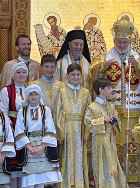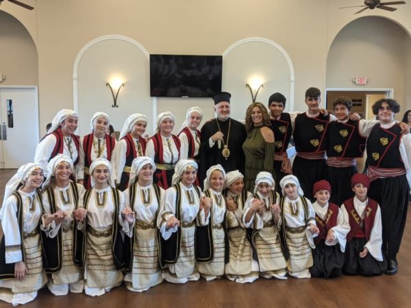 След Божествената Литургия, Енорията даде обяд в чест на архиепископа, който пък беше посрещнат с възхитителни традиционни гръцки народни танци от енорийските младежи.