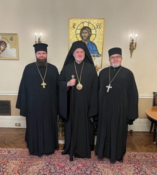 Негово Високопреосвещенство Архиепископът на Америка Елпидофор прие в кабинета си в Ню Йорк Високопреподобния Архимандрит Александър Беля, ръководител на Славянския Викариат към Архиепископията на Америка, както и отец Олександър Беля.