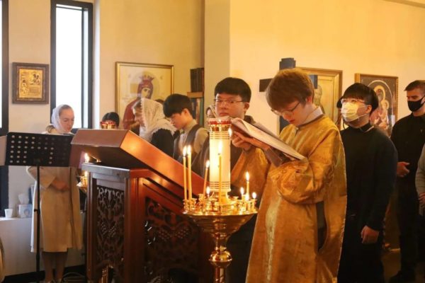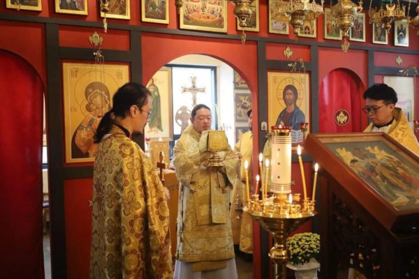 Архиепископу Феофану сослужили протоиерей Павел Канг, иеромонах Павел (Чхве) и диакон Нектарий Лим.