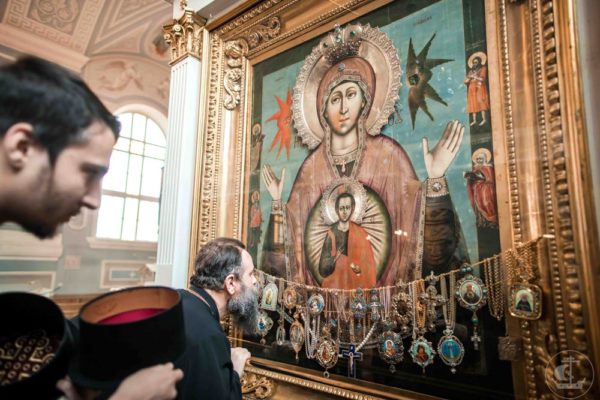 Његово блаженство се поклонио чудотворној икони Богородице зване Царскоселска, а посетио је и библиотеку Академије, црковно-историскијски музеј и храм Успења Пресвете Богородице.