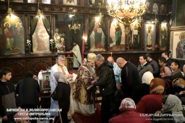 Архиереят обърна внимание на житието на преподобна Мария Египетска, чиято памет честваме в петата Неделя на Великия пост. Той заяви: „Ако сме внимавали в боголужението досега, ще видим, че нейният образ е изправен и малко по-рано за наш молитвен спомен – още във времето, когато се четеше Великият покаен канон свети Андрей Критски. В първата седмица, разделен на четири части и в тази, петата седмица, той беше изпълнен цялостно. Когато свети Андрей е изразил своето покаянно настроение с това свое произведение, в него безспорно заляга и една молитва към преподобна Мария Египетска с един или два тропара в конкретните песни. Особено това се вижда при цялостното изпълнение на канона. Това не е случайно, защото светицата е един уникален човек. Да, една обикновена жена, която се е отдала на порока и страстите в онова по-ранно християнско време, но която, виждайки образа на Божията Майка, виждайки образа на честния Кръст Господен, влизайки веднъж за винаги в храма, тя точно там променя цялостно своето житие, преобразява се духовно. И това е един молитвен подвиг, който е многогодишен, който е свързан с пустинно житие, безмълвно житие, и това знае един Бог и донякъде старецът Зосима, който вижда именно тази благочестива подвижница по това време, която преминава по водите, вървейки спокойно като по твърдост. Така че Бог е заложил в нас Божия образ, защото ние носим Божия образ в себе си. Това, което сме. Но Бог е дал и наша цел и задача да се усъвършенстваме чрез подобието Божие, и това усъвършенстване няма граници. Така че това е една повеля за всеки човек, който е познал Бога, вътрешно да се преобрази, да промени живота си и да достигне святост. Иначе нямаше как да каже свети апостол Павел: “вие сте съграждани на светиите и свои на Бога” (ср. Ефес. 2:19)“.