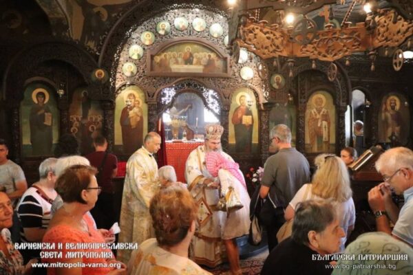 На 6 август 2019 г. Православната църква чества Господския празник Преображение Господне. Негово Високопреосвещенство Варненският и Великопреславски митрополит Йоан отслужи Божествена света Литургия в шуменския храм, посветен на друг голям Господски празник – Възнесение Господне. В съслужение с Архиерея бяха архиерейският наместник на Шуменска духовна околия и председател на храма ставрофорен иконом Димитър Стойков, иконом Красимир Капитанов – председател на храм “Св. Три Светители” и митрополитският дякон Любомир Георгиев.