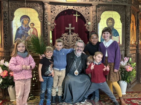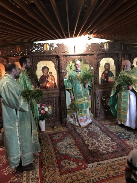 В Златоустовата света литургия оглавена от митрополит Антоний за Вход Господен в Йерусалим, участваха енорийските свещеници, предстоятелят на общината ни архимандрит Емилиян Боцановски и протоиерей Иван Карагеоргиев, както много сънародници, отделили от времето си, за да благодарят на Бога за всички получени блага и благодеяния, и да се потопят в тържествената атмосфера и споделят празника.