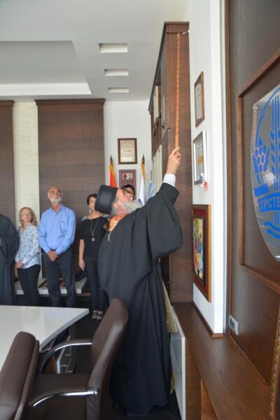 После литургијског отпуста и послужења у храмовној порти, Епископ је благоизволео да на позив председника општине Трстеник г. Александра Ћирића освешта зграду Општине Трстеник и благослови све верне који у тој институцији раде.