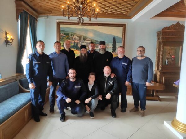 Заключительный день пребывания на Афоне был отмечен для делегации ЦКВ встречей и общением с игуменом Свято-Пантелеймонова монастыря священноархимандритом Евлогием (Ивановым), посещением единственного в мире храма в честь Благоверных русских князей, монастырской костницы и музея Пантелеймонова монастыря.