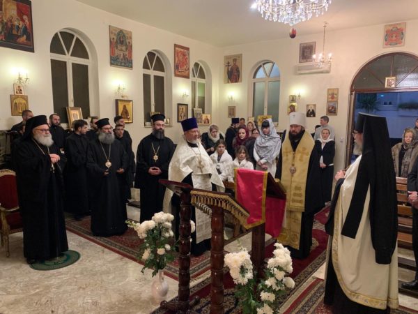 Приветствуя высоких гостей, архимандрит Филипп (Васильцев) выразил уверенность, что первый визит в Антиохийскую Церковь митрополита Антония как нового председателя ОВЦС, безусловно, укрепит отношения любви между двумя братскими Поместными Церквами. Он попросил Блаженнейшего Патриарха Иоанна всегда молиться о Святейшем Патриархе Кирилле, о митрополите Волоколамском Антонии, об общине храма и о всей Русской Православной Церкви.