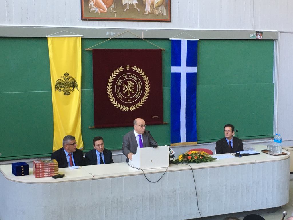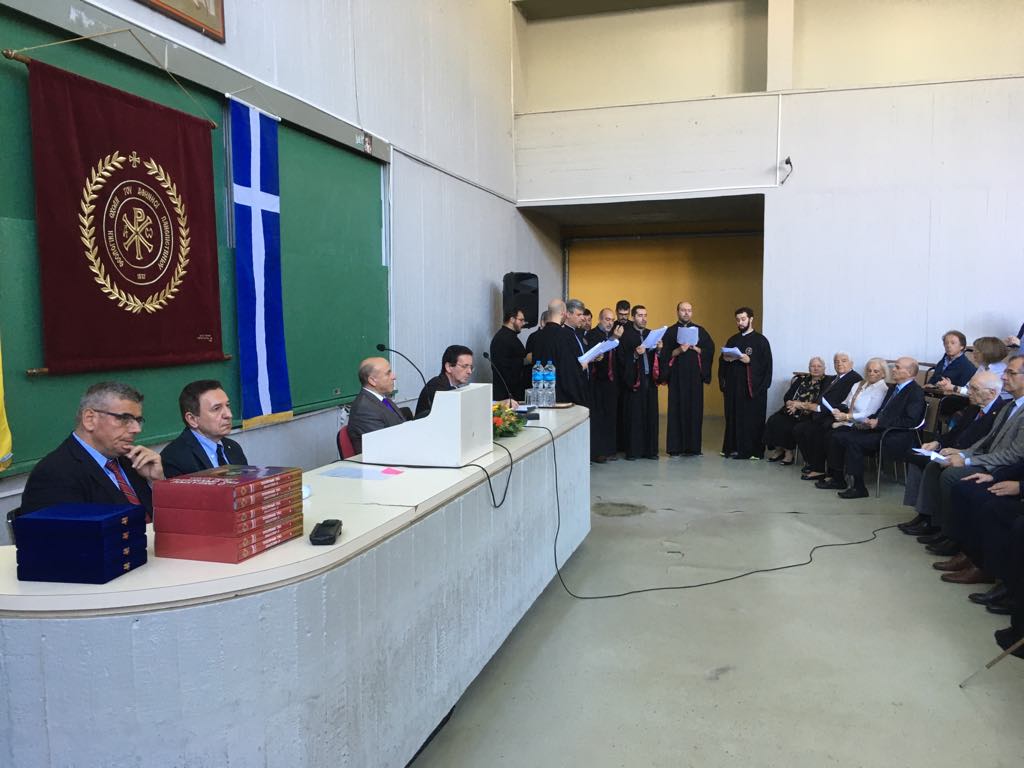 Икону доставил игумен св. Великой Обители Ватопед старец Ефрем. На входе ее принял декан факультета, главы обоих отделений, преподаватели, студенты и большое количество гостей.