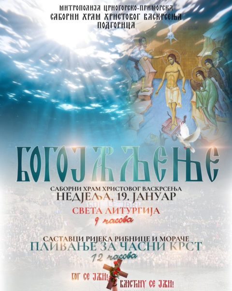 Света литургија са водоосвећењем у Саборном храму Христовог Васкрсења у Подгорици на Крстовдан, у суботу 18. јануара, служиће се у 8 часова, а на Богојављење, у недјељу 19. јануара, у 9 часова.