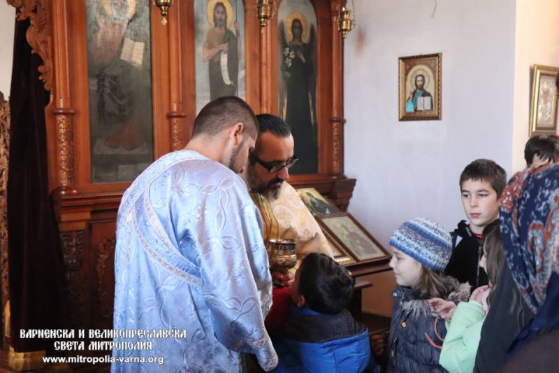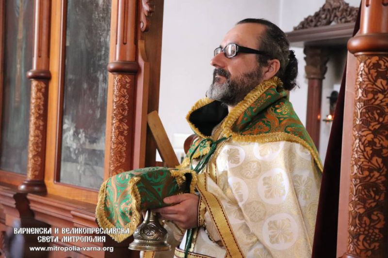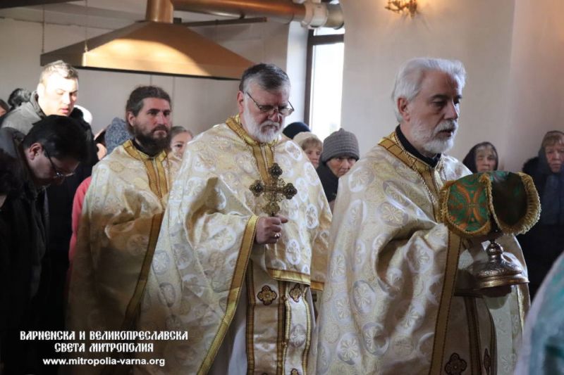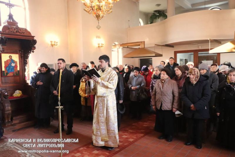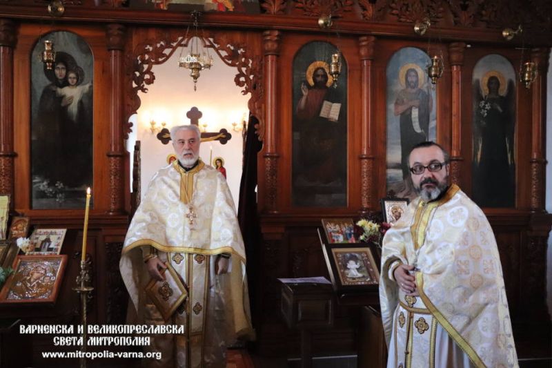 В светата Литургия съслужиха ставрофорен иконом Иван Дойчев, архиерейски наместник на Добричка духовна околия, свещеник Мирослав Енчев, председател на храм “Свети Климент Охридски” и архимандрит Прокопий, игумен на манастир “Света вмчца Марина”, село Ботево.