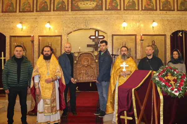 В ответном слове иерарх приветствовал членов общины Подворья Русской Православной Церкви в Ливане и передал в дар Подворью резную икону святителя Николая Чудотворца, созданную мастерами Северного Кавказа.