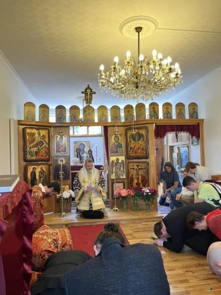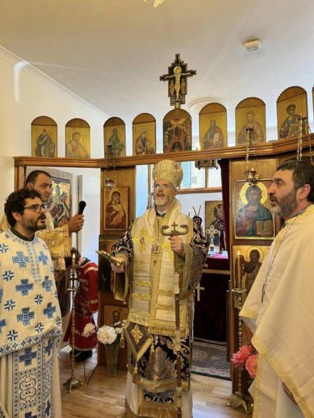 На празника Петдесетница митр. Антоний оглави празничното богослужение, а съслужители му бяха прот. д-р Добромир Димитров, председател на общината, и о. Юлиян Ангелов. Малкият параклис се оказа тесен за многобройните богомолци, които бяха дошли за празника от Лондон, Кент и Кеймбридж. В словото си митрополитът подчерта ролята на даровете на Светия Дух, които се изливат над Църквата, които стават дарове и на самите нас в тайнството на св. Кръщение и които трябва да използваме за изграждането на църковната общност и проповед в света. Днес това е изключително актуално с оглед съвременните проблеми и предизвикателства, пред които човечеството е изправено.