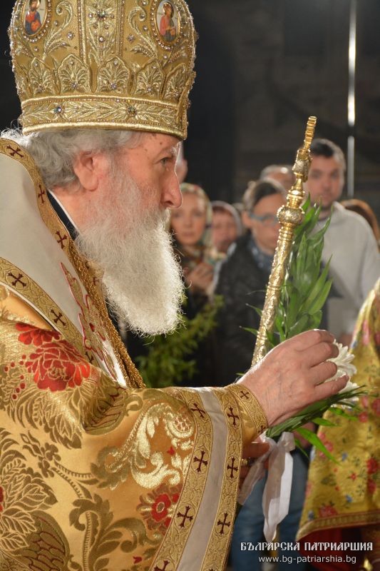 “В този ден радостта от срещата с Христос е неизбежно примесена и със скръб и горест, поради онова, което предстои: предателството, залавянето и присъдата над Него – присъда, произнесена от грешни човеци над Едничкия Безгрешен, а след това и кръстните страдания, разпятието и смъртта. Тази радостна тъга съпреживяваме и ние днес, събрани в храма за божествената света Литургия, в която сме не само свидетели, но и участници в най-важните събития от земния живот на Христа Спасителя”, каза в словото си Българският патриарх.
