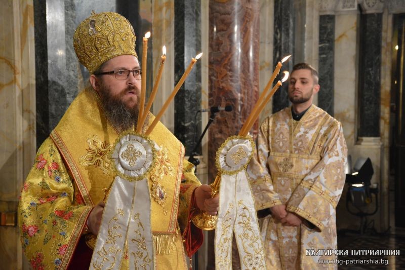 Светейшият предстоятел на родната ни църква съслужи с Техни Преосвещенства Мелнишки еп. Герасим, главен секретар на Св. Синод, Белоградчишки епископ Поликарп, викарий на Софийския митрополит, както и с архим. Василий, протосингел на Софийска св. митрополия, архим. Пахомий, ректор на Софийската духовна семинария, йером. Зотик, свещеници, храмовото духовенство и дякони.