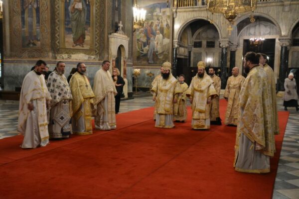 Заедно със Светейшия патриарх съслужиха Мелнишкият епископ Герасим,главен секретар на Св. Синод, Белоградчишки епископ Поликарп, викарий на Софийския митрополит, архим. Василий, протосингел на Софийска митрополия, храмовото духовенство и столични свещеници. В съслужението взеха участие и представителите на Руската и Румънската православни църкви у нас – архимандрит Васиан и ставр. ик. Нелуц Опря, които придружиха предстоятеля на БПЦ и на официалната церемония пред Паметника на незнайния воин.