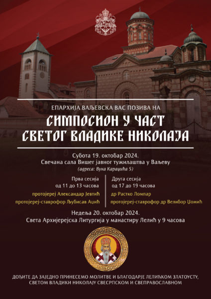 Епархија ваљевска организује 19. октобра 2024. године у Свечаној сали Вишег јавног тужилаштва трећи по реду симпосион у част Светог владике Николаја на којем ће учествовати угледни српски духовници и научници.