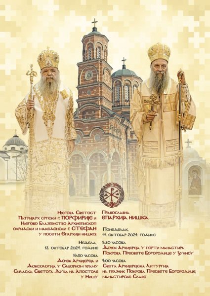 Његова Светост Патријарх српски г. Порфирије посетиће 13. и 14. октобра 2024. године Епархију нишку заједно са Блажењејшим Архиепископом охридским и македонским г. Стефаном.