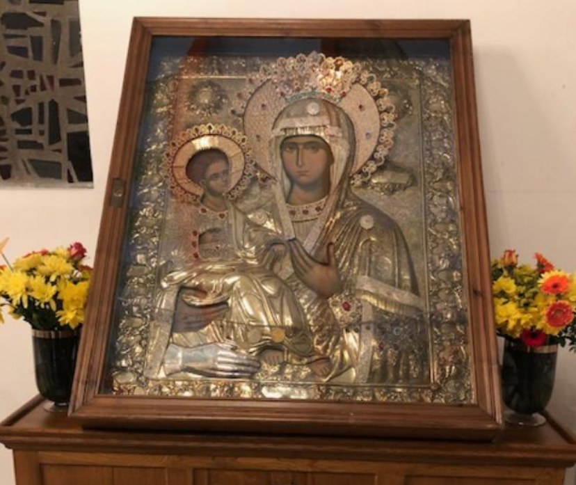 Са благословом Епископа диселдорфског и немачког г. Григорија икона Богородице Тројеручице из Црквене општине Вупертал стигла је у франкфуртски храм Васкрсења Господњег на Галусу.