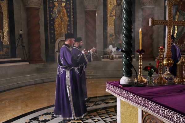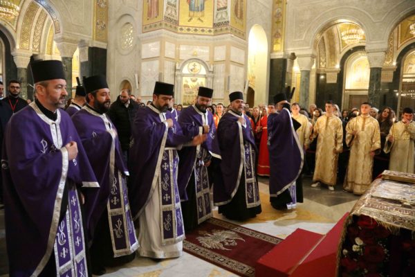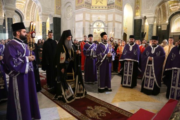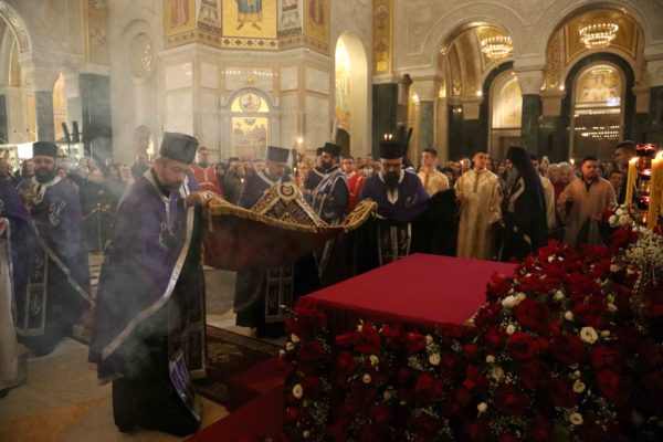 Његова Светост Патријарх српски г. Порфирије началствовао је 14. априла 2023. године вечерњом службом са изношењем плаштанице у храму Светог Саве на Врачару.