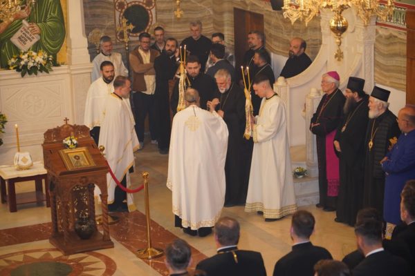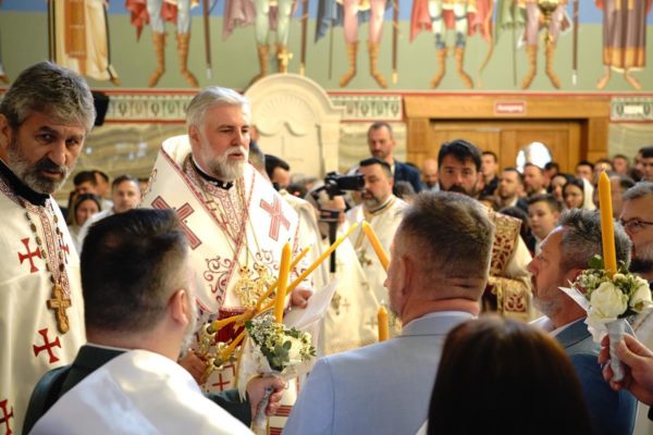Такву вјеру да нам Господ дарује: вјеру која се не боји рана. Вјеру која не тражи савршенство, него заједништво. Вјеру која се не ослања на камен, него на Христа. А у Њему – све што је рањено бива зацијељено и преображено. Зато је овај храм знак да Бог није одустао од нас. Сабира нас, рањене тражитеље, и дахом Духа Светога претвара у живу Цркву. Овај храм није само плод потребе за молитвеним мјестом у туђини, у којој, знамо то врло добро, није лако чак ни онда када нам ништа материјално не недостаје. Овај храм је плод труда да се наша заједница учврсти, да осјетимо припадност једни другима и мјесту у којем живимо.