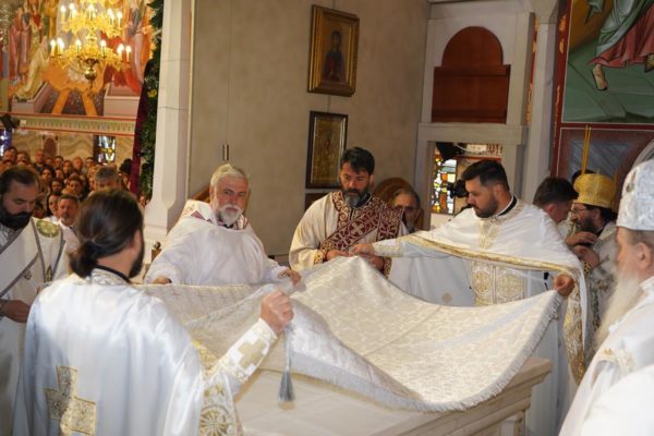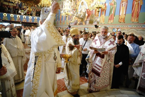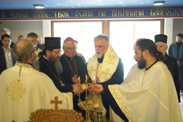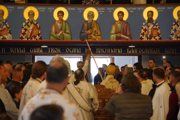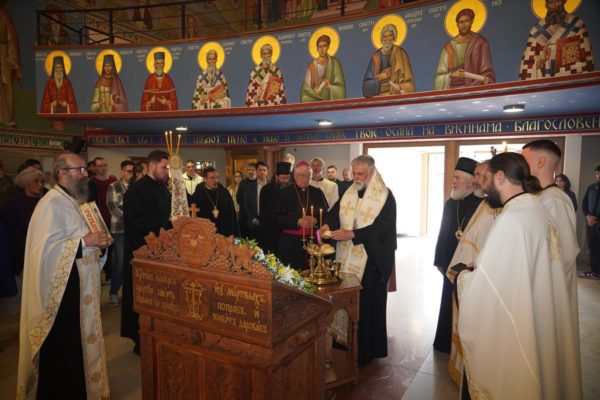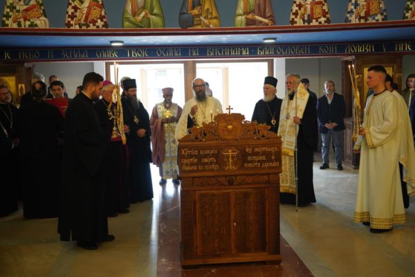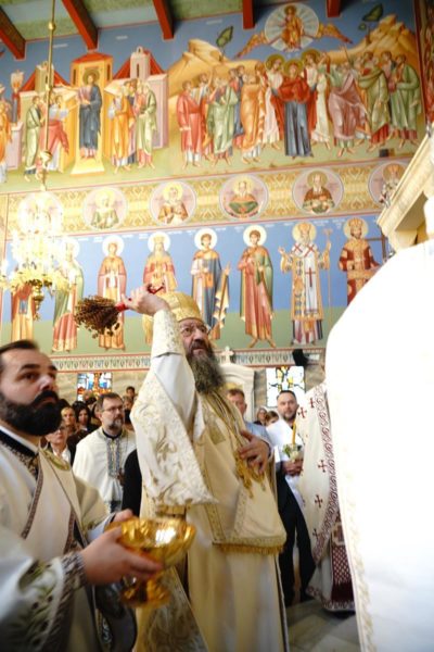 ,,Драга браћо и сестре, уважени гости, драги пријатељи, данас смо сабрани у великој и дубокој радости – у радости која превазилази ријечи. Освећен је нови храм, који је ушао у живот Цркве као мјесто сабрања, мјесто гдје ћемо се учити заједништву, покајању и праштању. А управо нам о сабрању и заједништву говори и данашње јеванђеље о јављању васкрслог Господа својим ученицима. Није случајно што се баш овај одломак чита у недјељи по Васкрсу. Јер све што се збило у оној соби – затворена врата и страх који стеже срца ученика – дубоко нас се тиче. И тиче се наше Цркве.