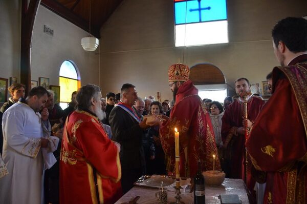 После свете Литургије и литије око храма, преломљен је славски колач, освештано је славско жито. Домаћин славе био је г. Драган Кељин а за следећу годину славу је преузела гђа Радмила Терзић. Славску трпезу љубави спремило је Коло српских сестара заједно са Црквеним одбором. Том приликом, председници Кола српских сестара гђи Види Вученовић уручена је архијерејска грамата за дугогодишњи рад и труд. Коло сестара заједно са Црквеним одбором, Епископу су на поклон уручили слику Херцеговачки бегунци.