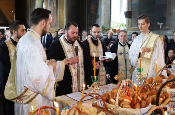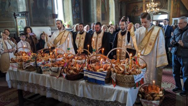 В храма „Св. Нифон“, построен от българи, по местна традиция бяха осветени традиционни за деня хлябове, наречени кончета или колачета. В отслужването на молебена се включи и прот. Кирил Синев. Проповед произнесе епархийският викарий свещ. д-р Йонуц Адриан Гибану. В богослужението съслужиха също свещ. съветник Гавриил Войчила, Мариус Стан, протопоп на Търговище-юг, свещ. Петре Георге и дяконите Евсевий Брату и Джеордже Михуц. Песнопенията изпълни хорът за източноцърковно пеене „Християнска Влахия“.
