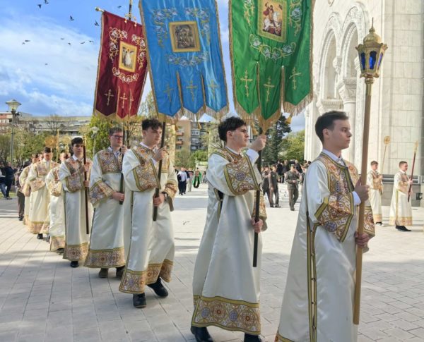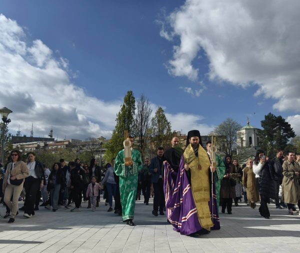 Његово Преосвештенство Епископ топлички г. Петар, викар Патријарха српског, служио је бденије у храму Светог Саве на Врачару. Пре богослужења, у свечаној литији уочи Цвети – Уласка Господа Исуса Христа у Јерусалим, уз владику Петра и свештенство учествовало је неколико стотина малишана, чланови културно-уметничких друштава, ученици Богословије Светог Саве, студенти Православног богословског факултета, представници Војске Србије и многобројни верни народ.