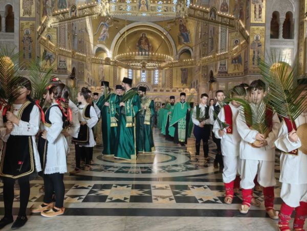 На Лазареву суботу, 12. априла 2024. године, у храму Светог Саве на Врачару свечано је прослављен радосни празник деце – Врбица.