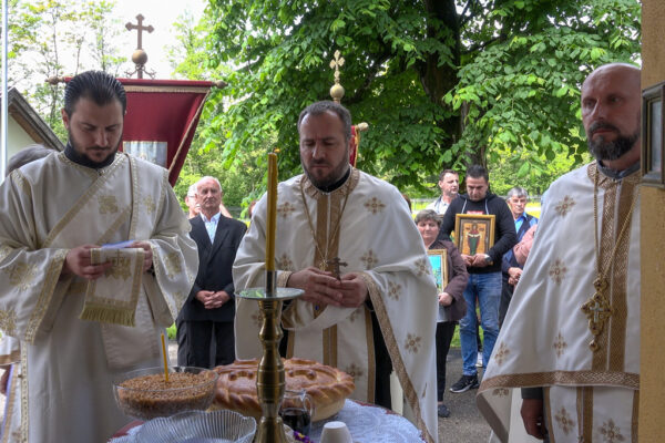Надлежни свештеник протонамесник Драган Марковић, у име верног народа, браће свештеника и своје лично име, поздравио је епископа Фотија и зажелио му искрену добродошлицу. Његовом Преосвештенству саслуживали су протојереји-ставрофори Боривоје Шањић, умировљени свештеник, Миладин Вуковић, архијерејски намесник теслићки, и Драгиша Симић, парох добојски, као и протонамесник Милош Јовић и протођакон Богдан Стјепановић.