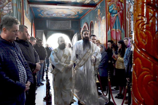 – Ми служио свету Литургију у овоме храму и то је велика радост. Свети Јустин Ћелијски каже да не може да замисли Литургију где је тужан човек. Ми данас имамо велику радост што ће јерођакон Јован, професор Богословије, бити рукоположен у чин свештеника. Помолимо се Богу да благодат коју он данас прима остане на њему до краја његовог живота, а њега да замолимо да се он данас моли за нас. Драги брате Јоване, ти ћеш данас на овој Литургији благодаћу Духа Светог, кроз полагање руку Епископа на твоју главу, бити рукоположен у чин свештеника. Ти данас, брате, добијаш оно што ни анђели немају, оно што ни анђелима није дато, а ето нама недостојнима, који смо по промислу Божјем свештеници, нама је дато. Зато те молим да се због те велике благодати и дара којег примаш чуваш на првом месту од гордости и сујете, молим те оним речима Светог апостоа Павла да кроз благодат коју задобијаш и пророчанство које ти се даје да се укрепљујеш. Ти данас, брате, биваш рукоположен у ову свету недељу која је посвећена Светом Јовану Лествичнику. Све што бих ти пожелео јесте да се угледаш на Светога Јована Лествичника, да се угледаш на његове поуке, лествице, мердевине, да се успињеш и да се трудиш до пуноће раста Христовог, али једно знај: прво мораш да савладаш прву степеницу, а та прва степеница јесте смирење о којем говори Свети Јован Лествичник.