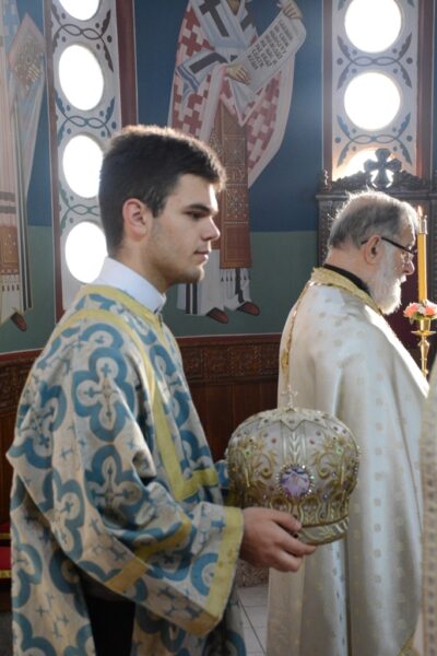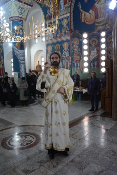 Саслуживали су протојереји-ставрофори Зоран Крстић и Милан Борота, протонамесник Бранислав Матић, јерођакон Јован Прокин и ђакон Александар Ђорђевић. Чтецирали су ученици Богословије Светог Јована Златоуста. Владика је верном народу протумачио прочитане одељке из Јеванђеља – звучни запис.