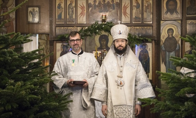 По окончании богослужения во внимание к самоотверженному труду и личному вкладу в преодоление пандемии коронавирусной инфекции иерей Николай Тихончук, медсотрудник парижского госпиталя Cochin, и диакон Марк Андроников, заведующий отделением скорой помощи госпиталя Antoine Beclère (г. Кламар), были удостоены медали Русской Православной Церкви «Патриаршая благодарность». От имени Святейшего Патриарха Московского и всея Руси Кирилла награды вручил митрополит Корсунский и Западноевропейский Антоний.