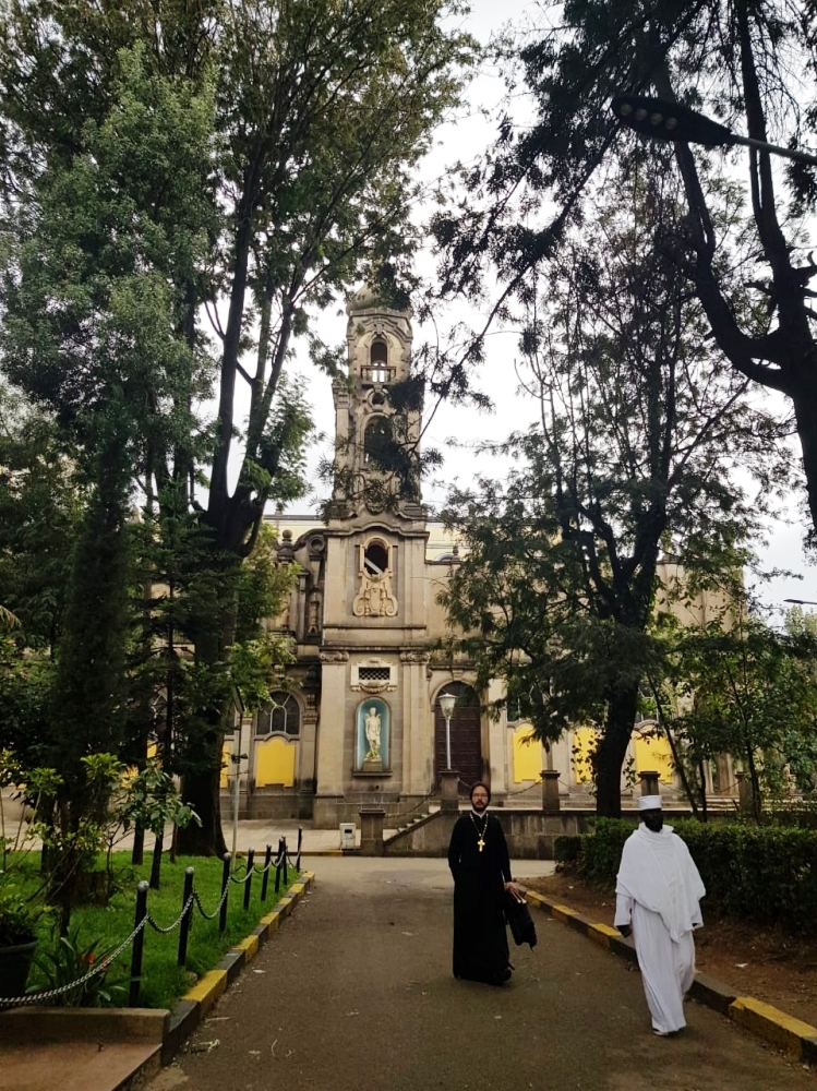 По благословению Святейшего Патриарха Московского и всея Руси Кирилла глава Патриаршего экзархата Западной Европы митрополит Корсунский и Западноевропейский Иоанн направил клирика Корсунской епархии священника Сергия Кима в Эфиопию с целью совершения Пасхальных богослужений для сотрудников Посольства Российской Федерации в этой стране. Путешествие продлилось с 25 по 30 апреля 2019 года; во время визита священнослужителя сопровождал дипломатический атташе Посольства России в Федеративной Демократической Республике Эфиопии К.М. Клюйков.