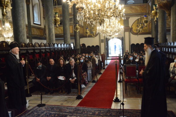 На 07 април 2022 г., голяма група ученици от 1-ви и 4-ти курс на два лицея от Ламия (9-ти и 12-ти клас – Бел. прев.) посетиха Вселенската Патриаршия, предвождани от Високопреосвещения Митрополит на Фтиотида г-н Симеон, директори и учители.