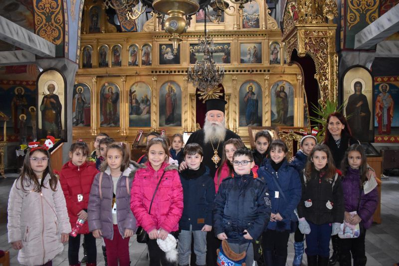 Децата подариха на дядо владика ръчно изработена картичка, с пожелания за радост и щастие, а митрополит Гавриил им раздаде подаръци и им пожела хубаво посрещане на празника Рождество Христово, когато нашият Господ Иисус Христос се ражда като Младенец.