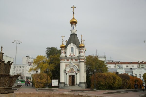 Храм-часовня во имя святой великомученицы Екатерины стал подарком городу к его 275-летию. Постановление о строительстве часовни на месте снесенного в середине XX века Екатерининского собора глава Екатеринбурга подписал в 1997 году, а уже в 1998 году были завершены основные работы.