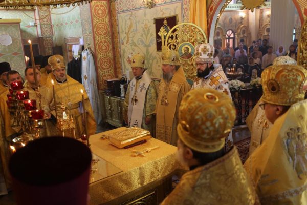 Перед началом богослужения в храме состоялась встреча ковчега с частицей мощей святителя Николая Чудотворца.