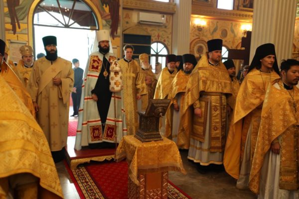 Богослужение совершалось на церковнославянском, тайском и английском языках.