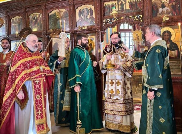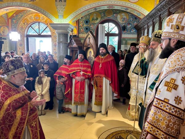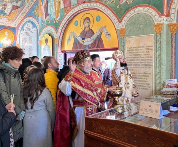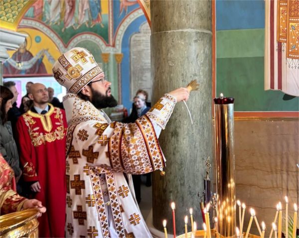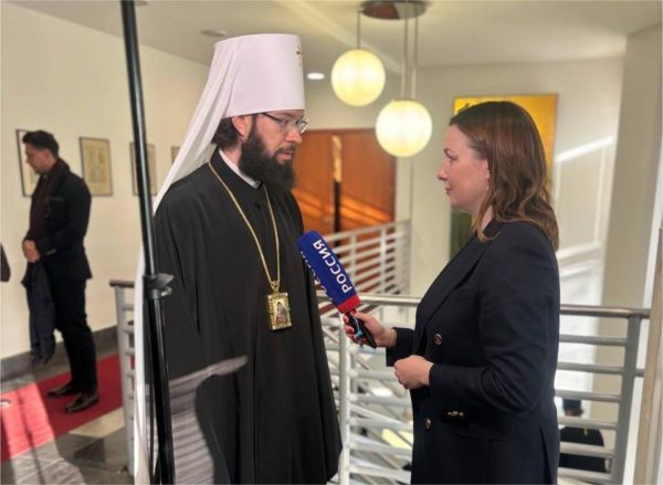 Митрополит Антоний также передал Святейшему Патриарху Порфирию памятную панагию, а в дар Свято-Троицкому храму – напрестольный крест.