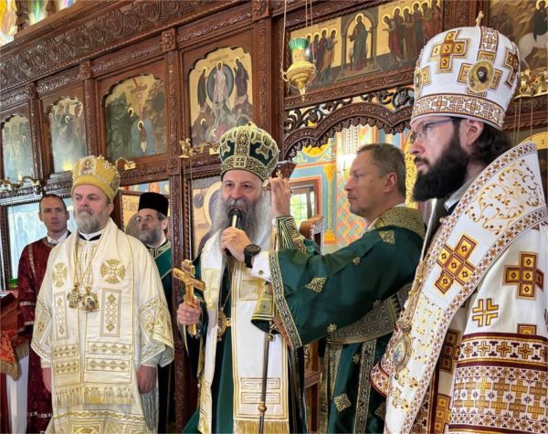 Святейший Патриарх Сербский Порфирий тепло поздравил председателя ОВЦС митрополита Волоколамского Антония, настоятеля храма Подворья протоиерея Виталия Тарасьева и посетивших Сербию членов официальной делегации Русской Православной Церкви с юбилеем Свято-Троицкого храма.